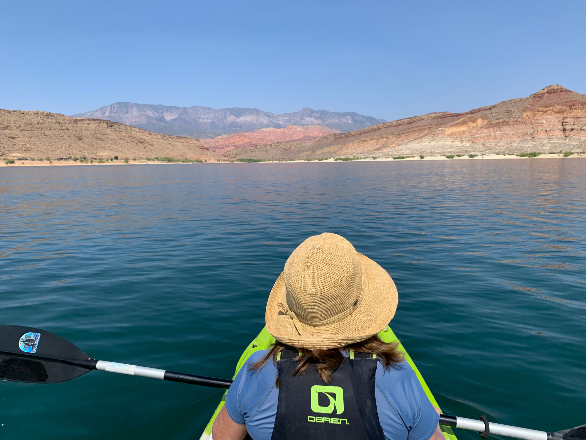 Quail Creek is less than a mile from the KOA so our first day in southwestern Utah was spent on the lake. We e-biked the short distance to the park entrance and paid $5/person day-use fee. There is a campground here with access to the lake. Campground: $25 per night for the primitive site and $38 per night for a site with power and water.
