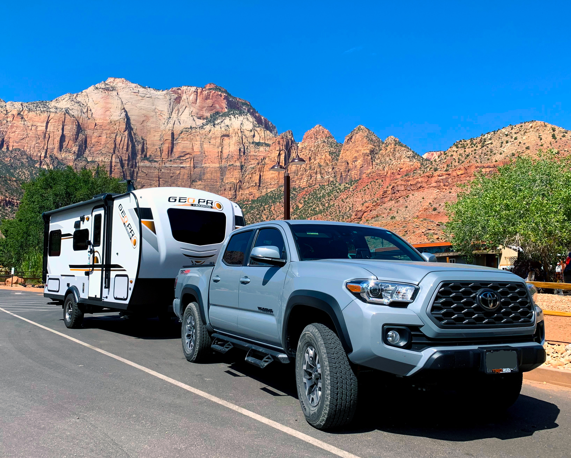 Zion National Park Visitor Center, Zion Canyon RV Resort, and other places on the Virgin River were heavily damaged by a flash flood on Jun 29 2021. Most of the damage has been repaired but cleanup continued and there was a lot of construction going on. The main lodge that used to greet people at Zion Canyon RV Resort was gone and new construction underway. The offices are housed temporarily in small office trailers.