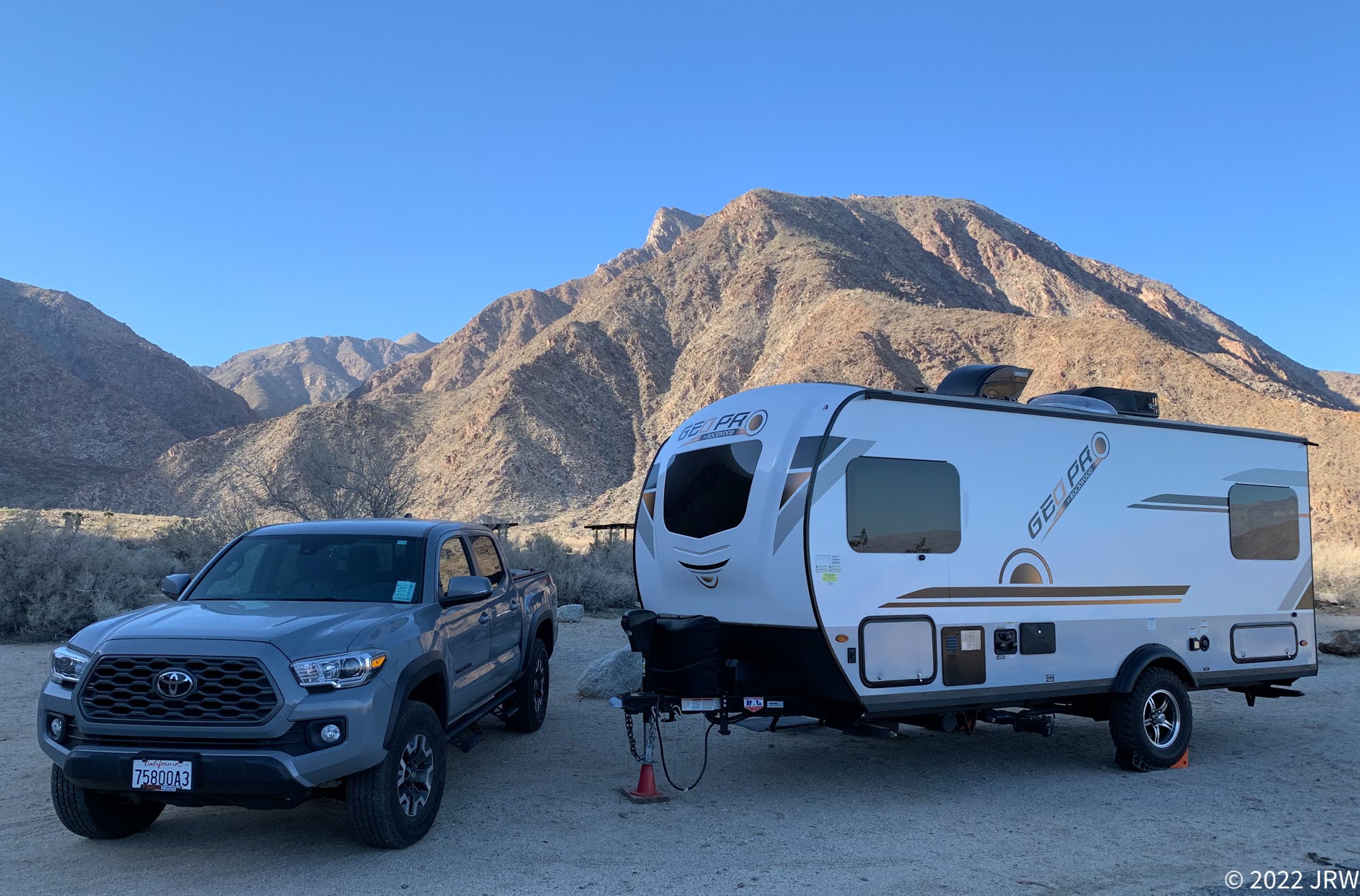 Borrego Palm Canyon Campground has full hookup camping (parking-lot-style camping, completely booked) and dispersed campsites (some spotty availability during the week). There’s a very well-maintain restroom with flushing toilets, sinks, and hot private showers that require tokens (2 for $1). Scattered around the dry-camps are also vault toilets and water faucets to fill containers. It’s a very nice State Park campground – highly recommended.