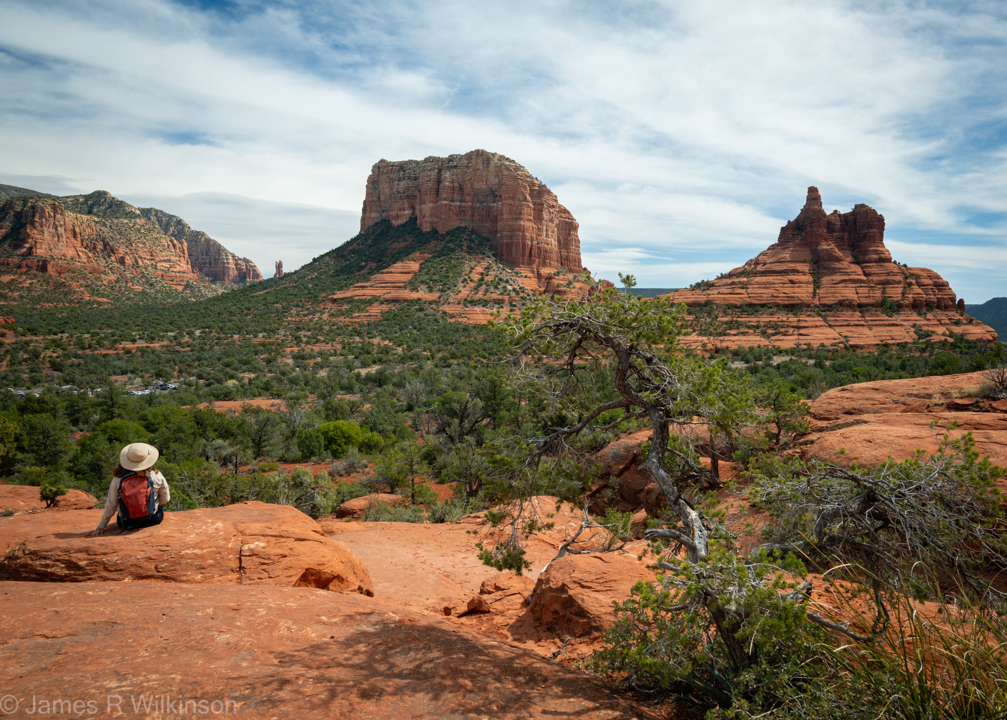 Wednesday was a great weather day – clear and cool – so we drove to Sedona, stopping at the Visitors Information Center. Sedona was really busy while we were visiting since our trip happened to coincide with Spring Break. We asked the docent of which popular trail we should hike and she recommended a less crowded trail. We agreed and ended up heading toward Courthouse Butte & Bell Rock Loop. As much as we wanted to take her advice, we found parking and that dictated our hiking route.