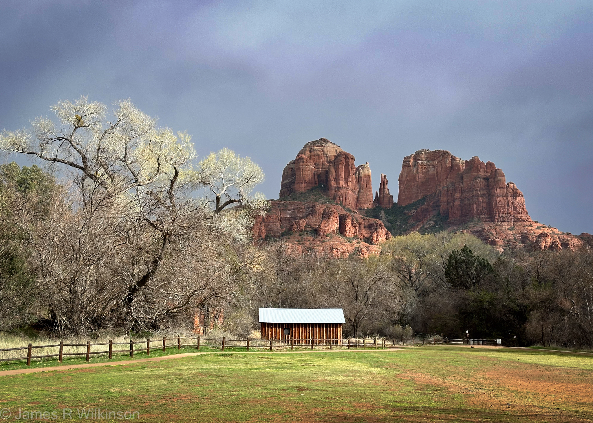 Our second day in the Camp Verde area was rainy. We hoped the weather would improve as we drove north toward Sedona. Most of the earlier part of the day was scattered showers so we were able to enjoy some time in the late morning exploring & hiking Crescent Moon Ranch. Unfortunately, it began to rain too hard for our hike to be enjoyable so we figured we’d grab some lunch and come back. Since there is a $12/vehicle day use fee, I asked the ranger at the entry booth is reentry was possible. He gave me a dated day pass that I could show when we got back. The afternoon was clear so we were able to finish this short 2mi easy hike.